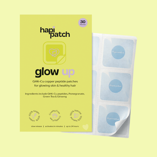 Discover the Glow Up patches, our best-selling copper peptide patches for skin and hair - designed to boost collagen, improve elasticity, and support stronger, healthier strands.