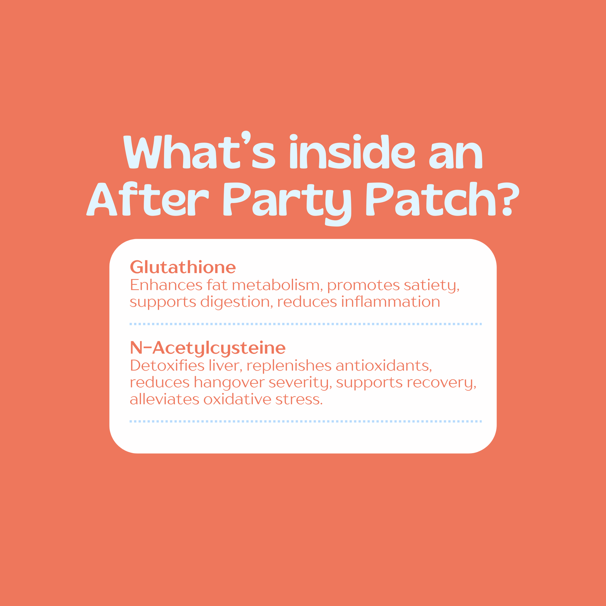 - All-Natural Formula: Composed of 100% natural ingredients, The After Party Patch ensures you're getting the best in hangover relief without any harsh chemicals.