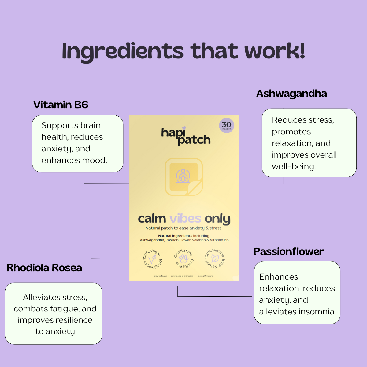 - Calm Vibes Only Patches (6 pack): Quickly relieve stress and anxiety.